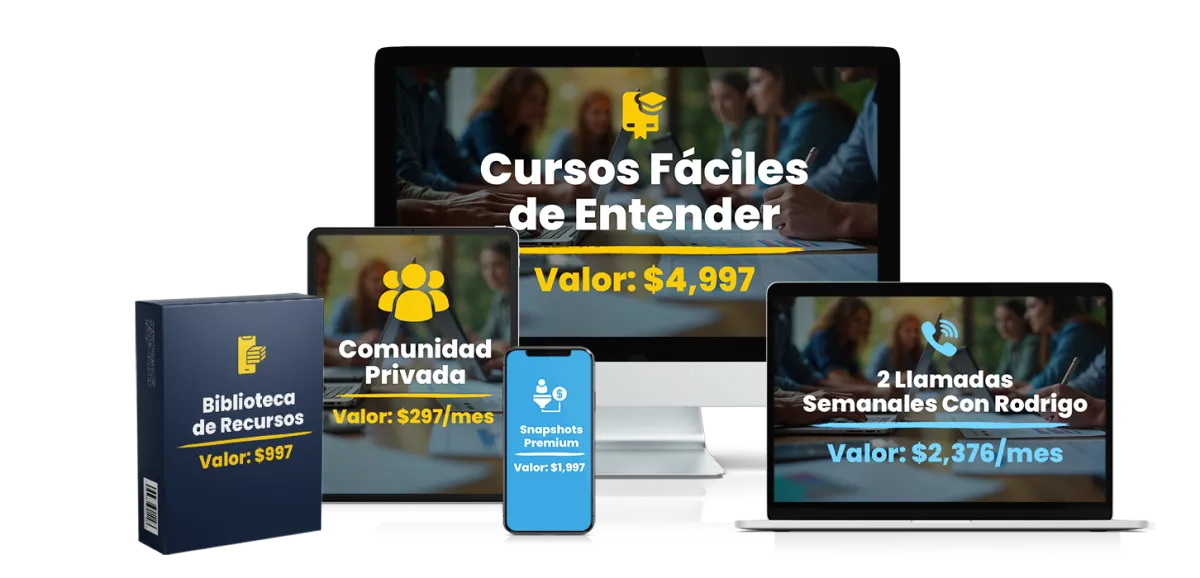 Cursos Premium + Llamadas Semanales + Comunidad Activa + Recursos Probados